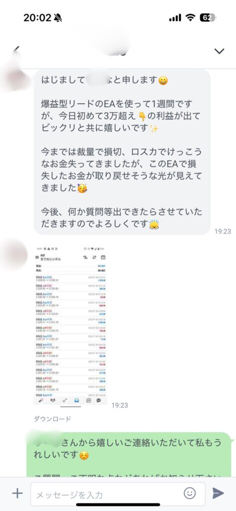 次世代ゴールドEAの使用者から実際にいただいたメッセージを一部ご紹介
