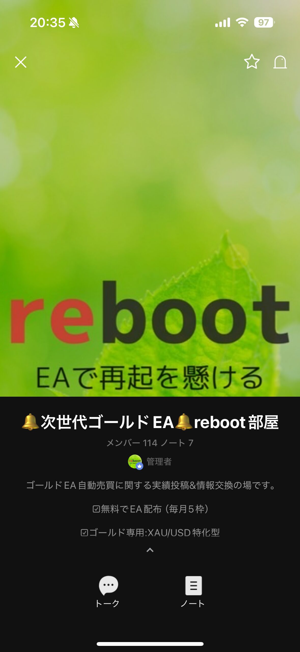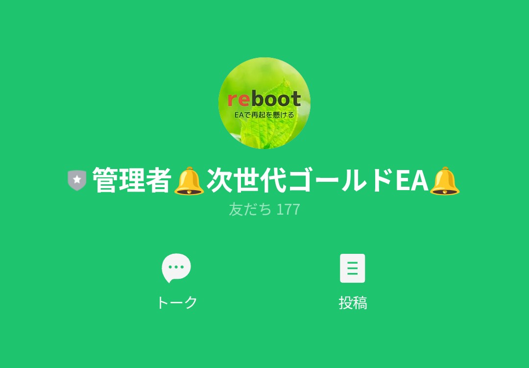 オープンチャットの実績なんていいから早く、次世代ゴールドEAを使ってトレードしたい方はrebootグループの公式LINEで配布していますので、