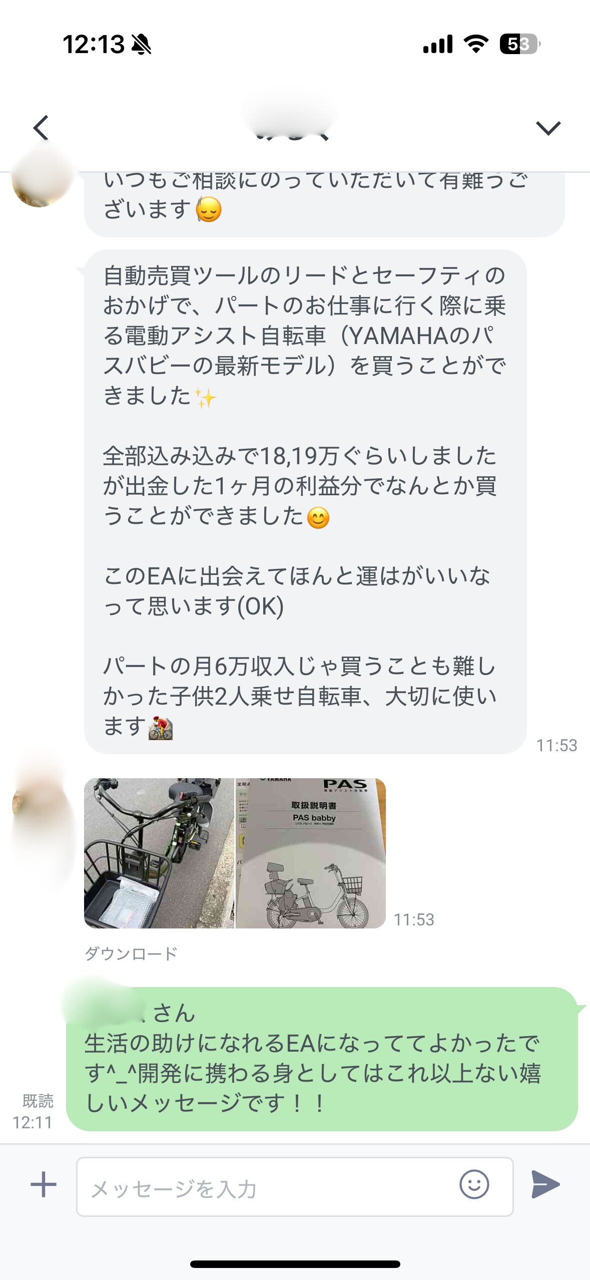 パートで働いている主婦の方ですが値段が高い(18万)子供乗せ自転車を買ったそうで、そのお金はEAの稼ぎ分^_^👇
